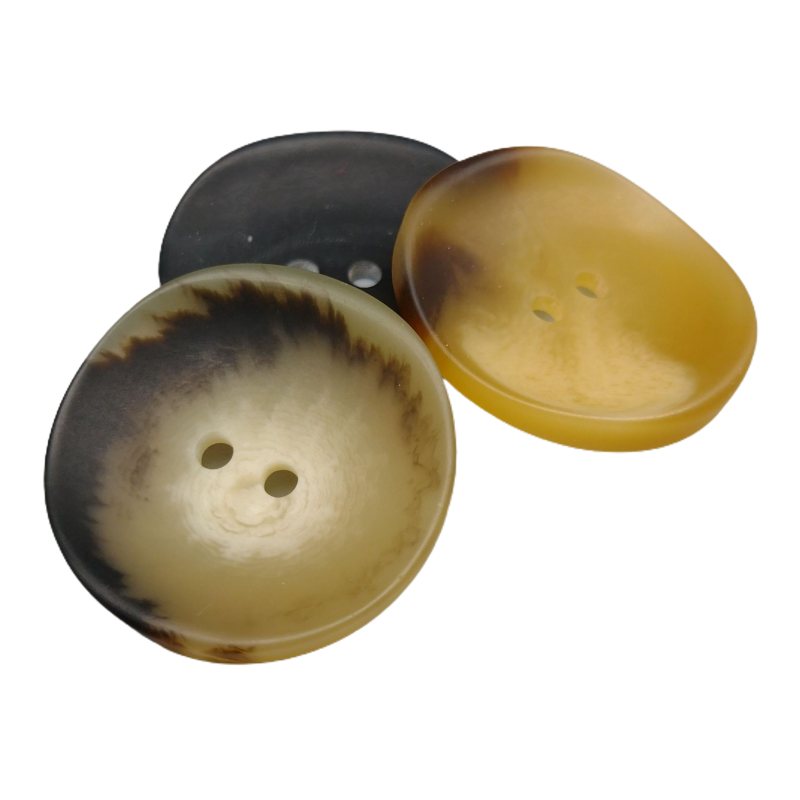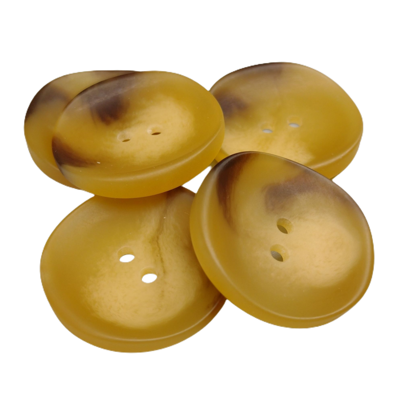 Diese Knöpfe bestehen zu 90-95% aus recyceltem Polyesterharz, wovon 40% aus biobasierten Produkten bestehen.