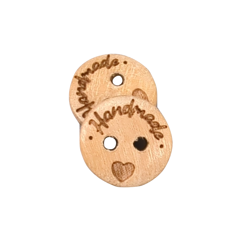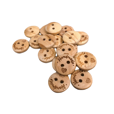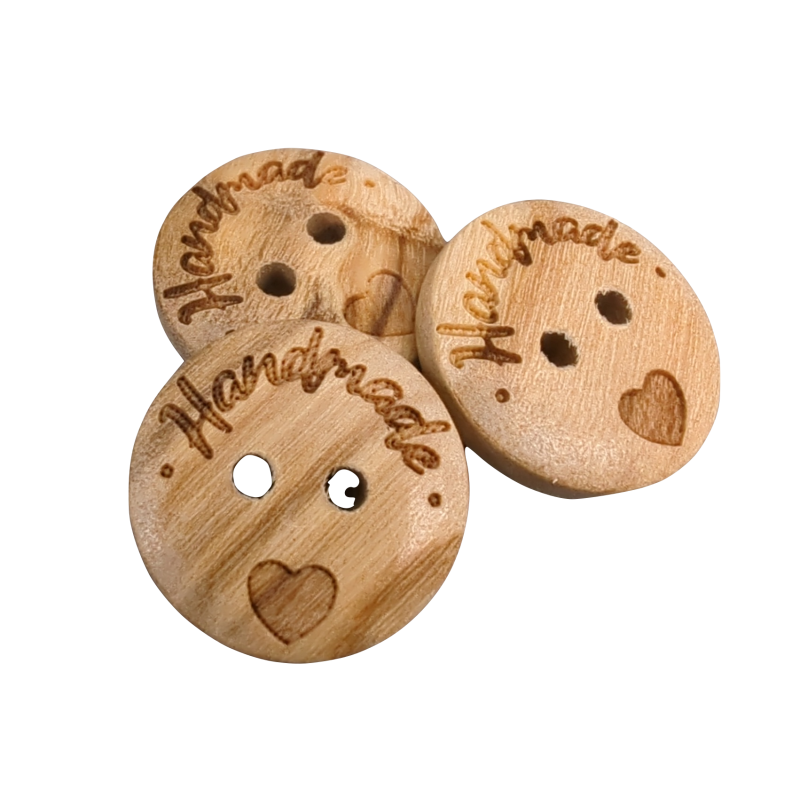 Handgefertigte, gravierte Holzknöpfe werden aus Olivenholz hergestellt.