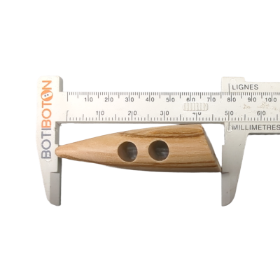 Die hölzernen Dufflecoat-Knöpfe TMD 1506 sind aus natürlichem Olivenholz gefertigt, haben einen hellbraunen Farbton und zwei Löcher zum Annähen an das Kleidungsstück.
