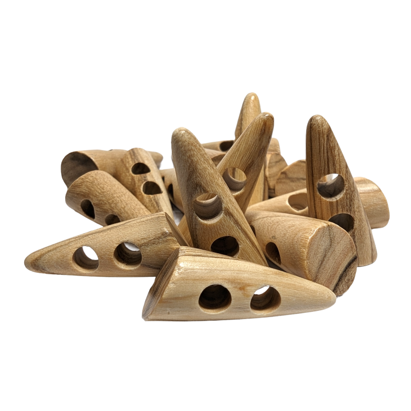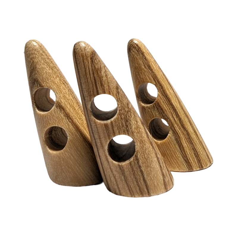 Die hölzernen Knebelknöpfe sind aus Olivenholz gefertigt. Es handelt sich um ein 100% biologisch abbaubares und 100% umweltfreundliches Produkt.