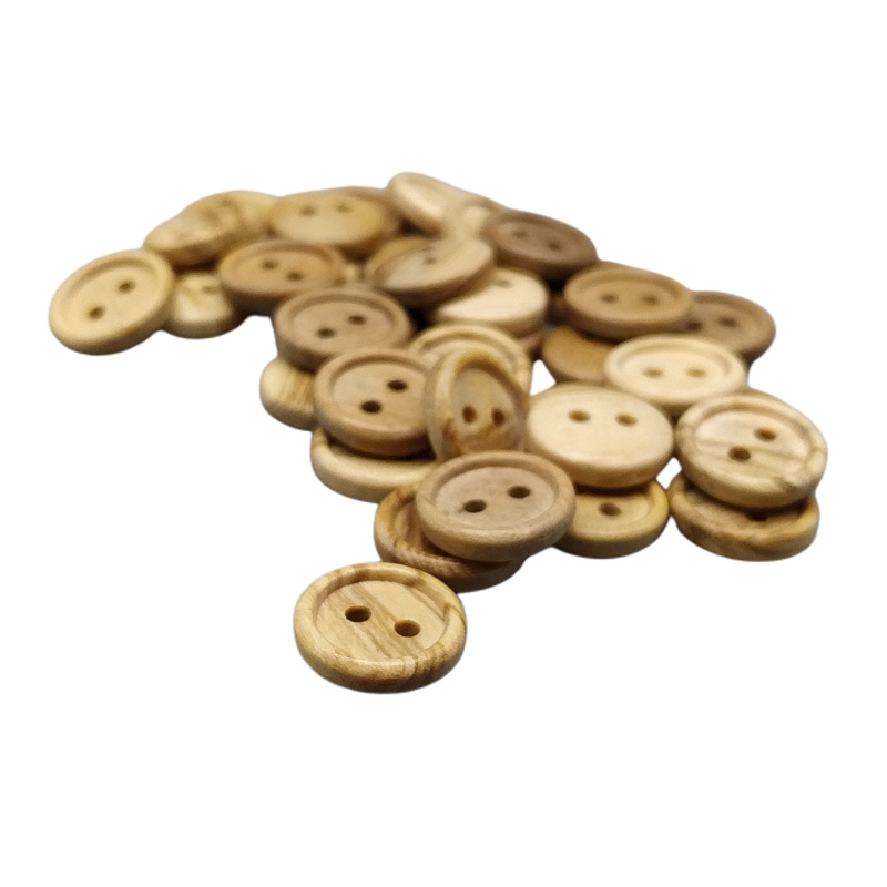 Die Holzknöpfe sind aus Olivenholz gefertigt. Sie sind zu 100 % biologisch abbaubar und zu 100 % umweltfreundlich.