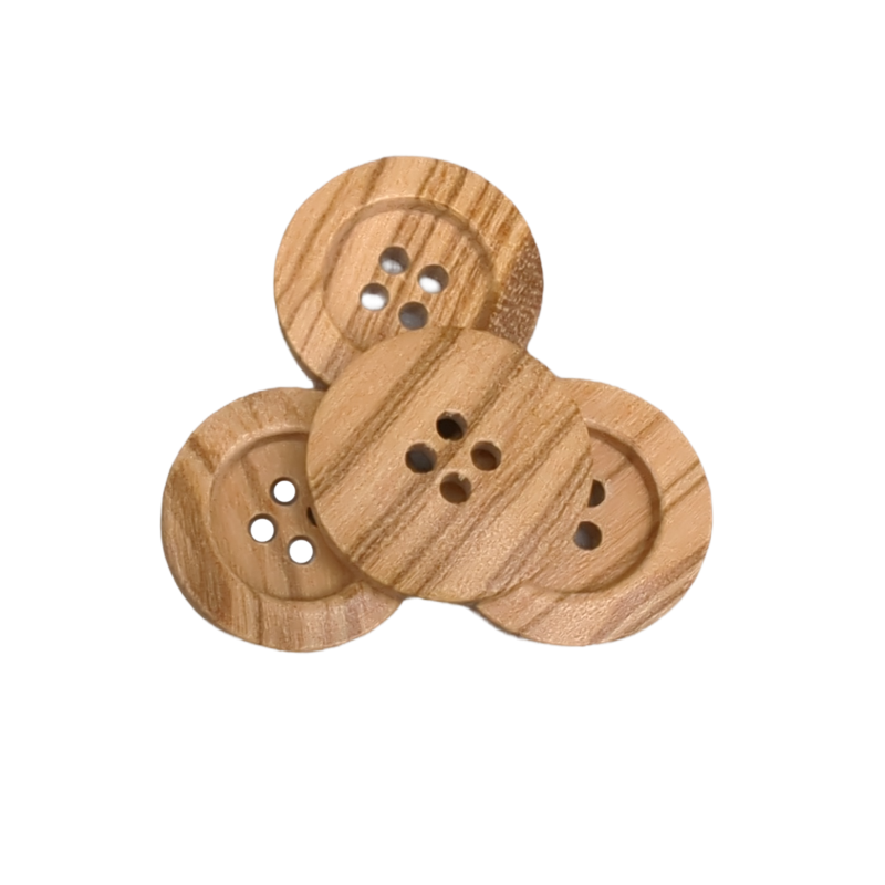 Die Holzknöpfe sind aus Olivenholz gefertigt. Sie sind zu 100 % biologisch abbaubar und zu 100 % umweltfreundlich.