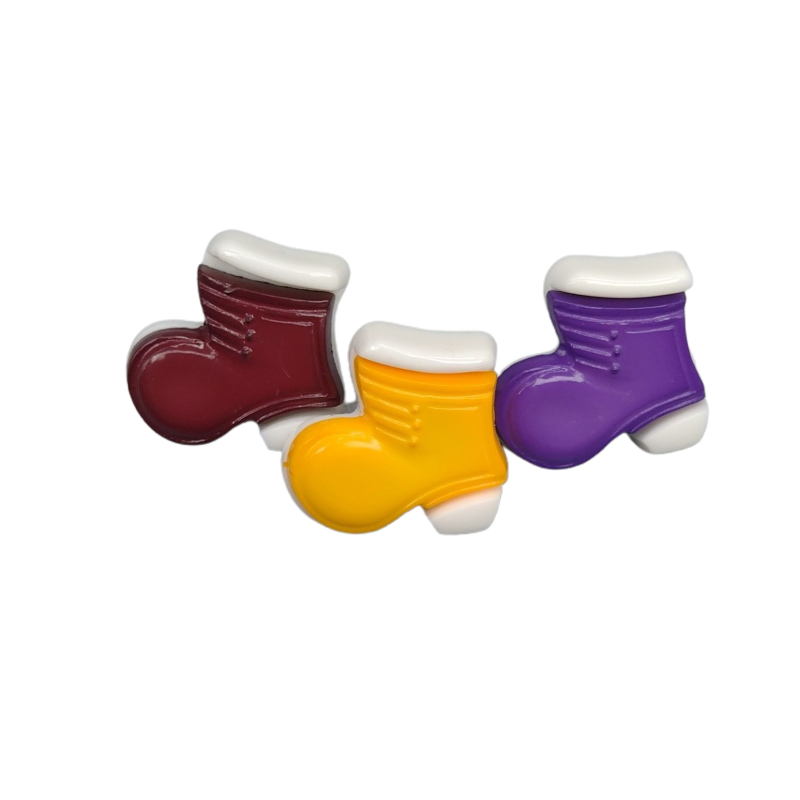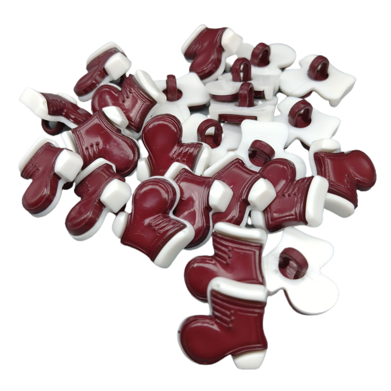 Kastanienbraune, stiefelförmige Knöpfe.
