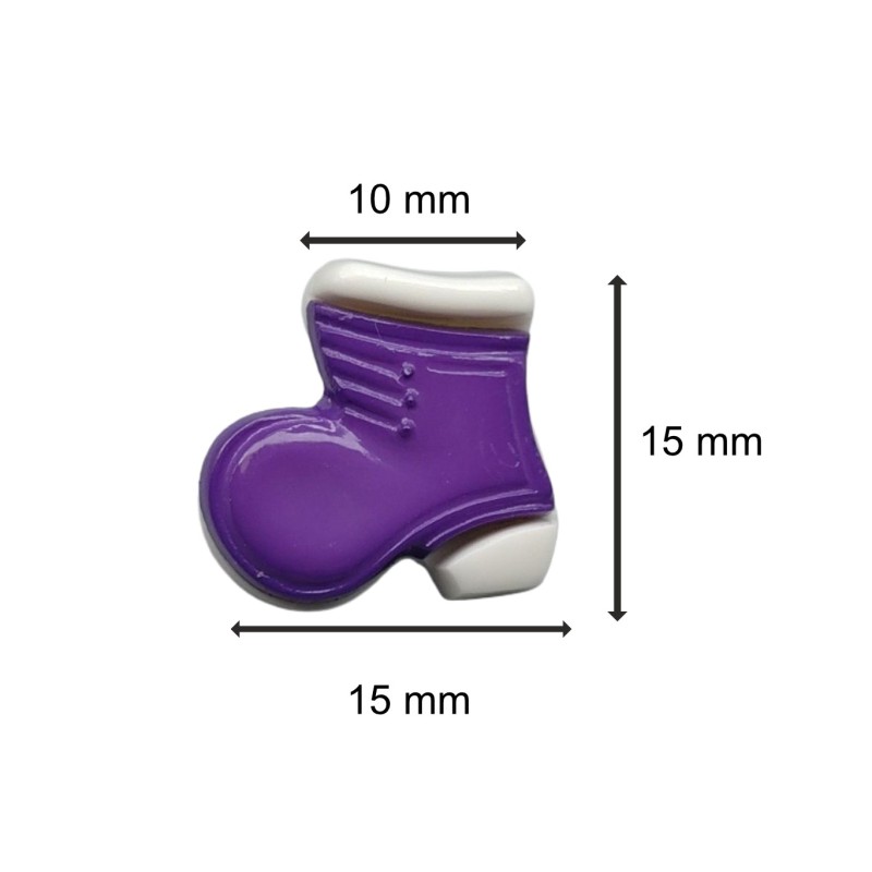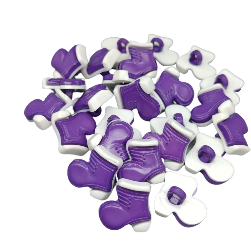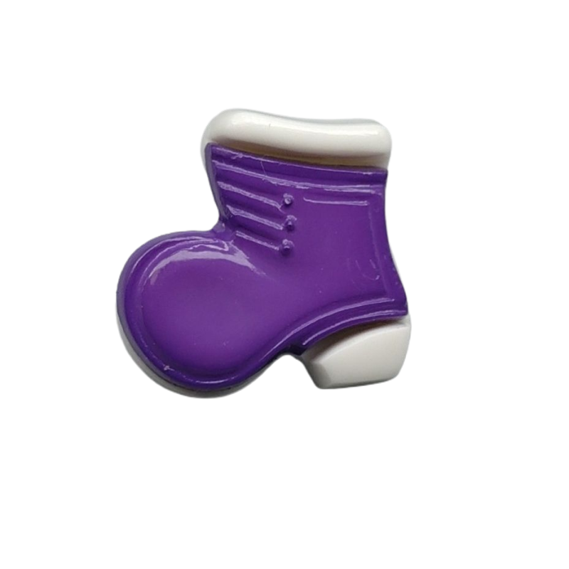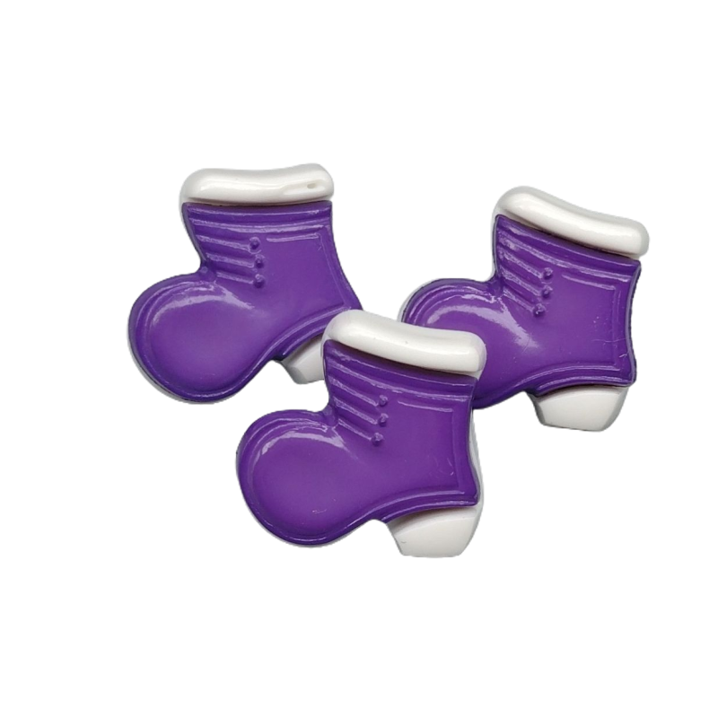 Lilafarbene, stiefelförmige Knöpfe.
