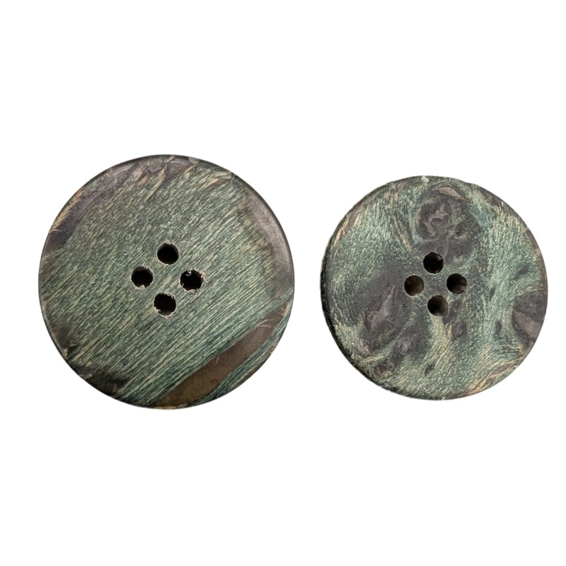 Diese Knöpfe werden aus natürlichen Wurzeln und Polyesterharzen hergestellt.