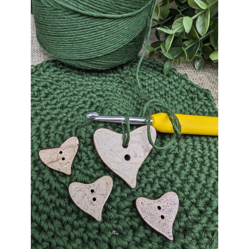 Herzförmige Kokosnussknöpfe eignen sich ideal als Detail für eine Tasche, ein Bastelprojekt oder als Dekoration.