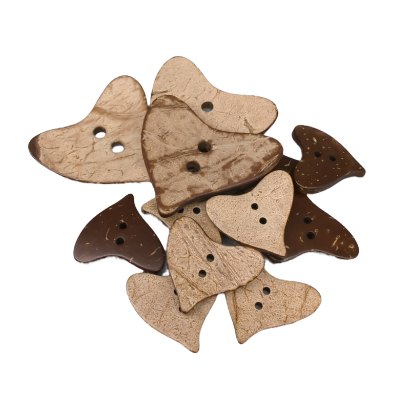 Die herzförmigen Kokosnussknöpfe werden aus Kokosnussschalen hergestellt.