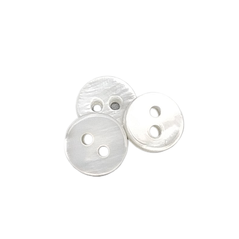 - Diese Perlmuttknöpfe heißen RIVER ; sie sind weiß mit einem kleinen, schimmernden Muster. Sie sind sehr hochwertig verarbeitet und beidseitig tragbar.