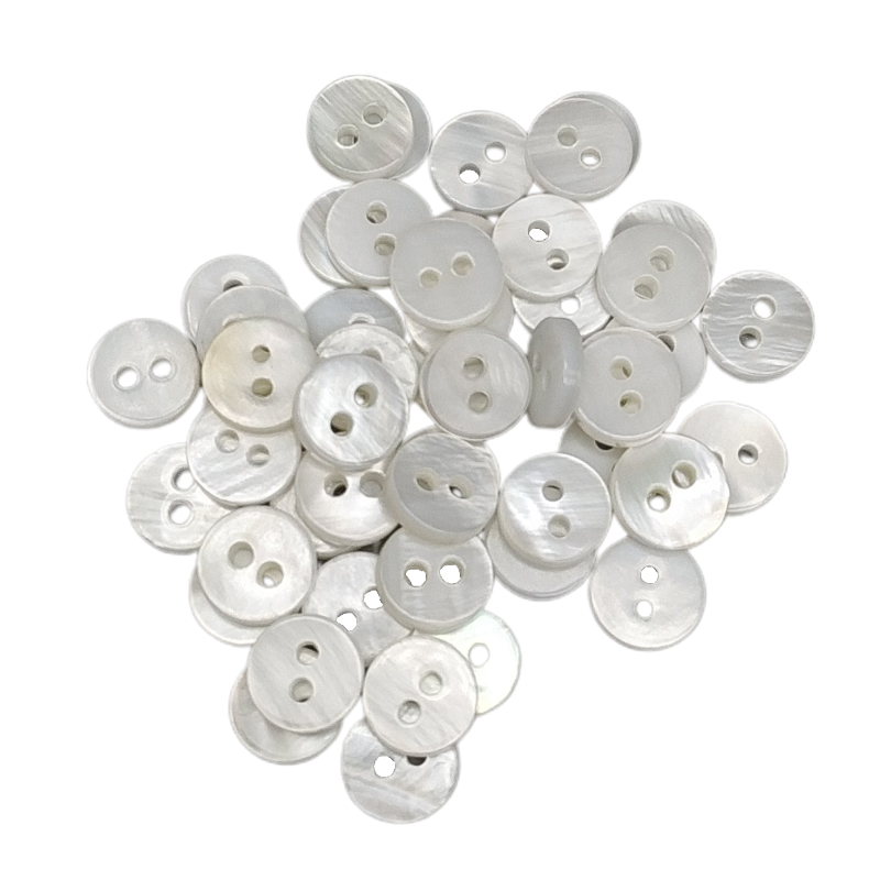 - Kleine Knöpfe mit 8 mm, 10 mm und 12 mm Durchmesser werden für Babykleidung, Lätzchen, Hemdmanschetten oder Hemdkragen verwendet.