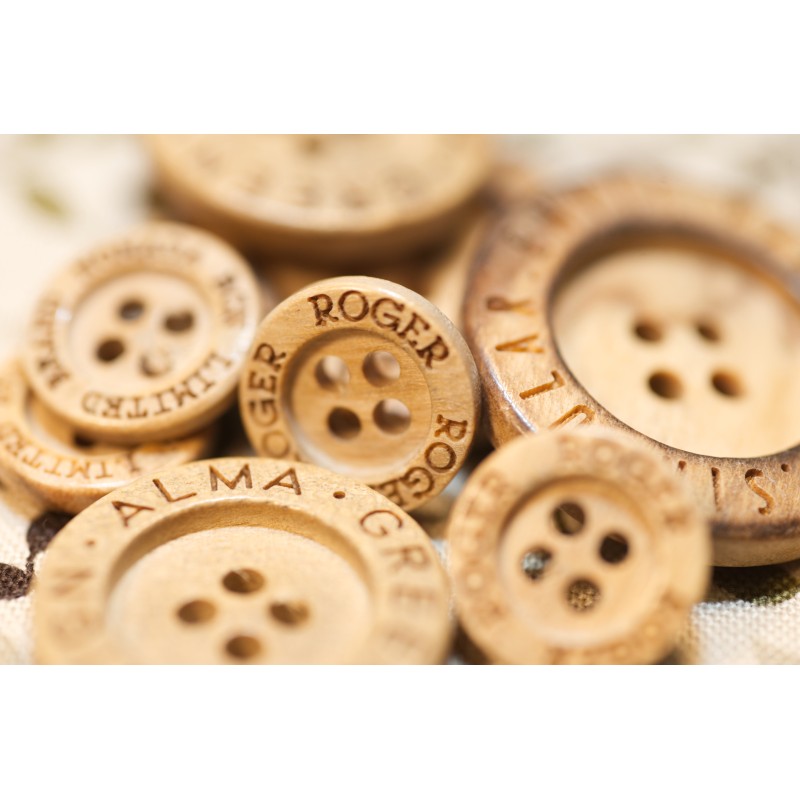 Die Holzknöpfe sind aus Olivenholz gefertigt.