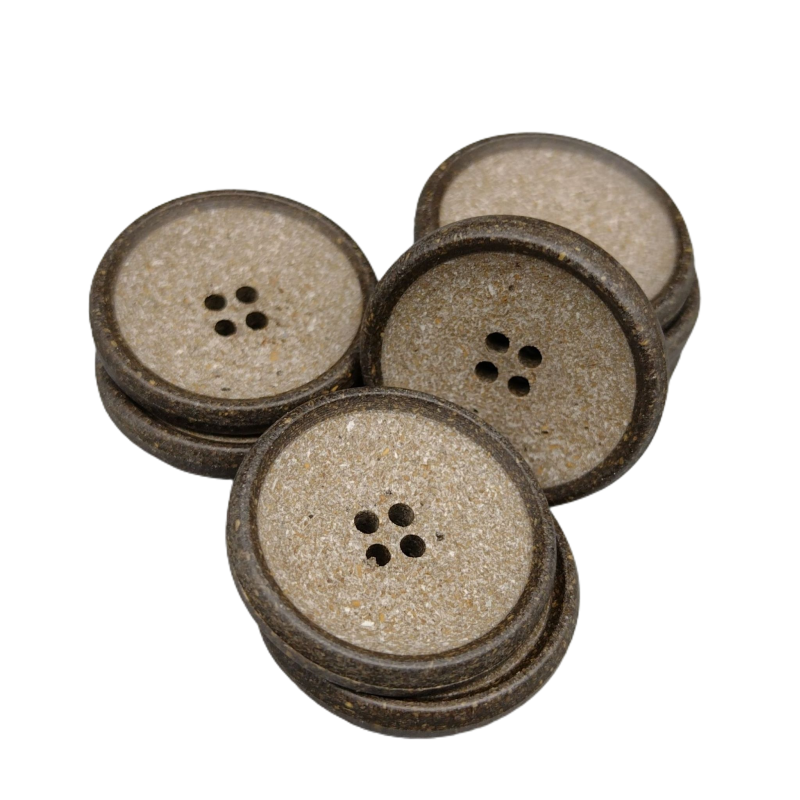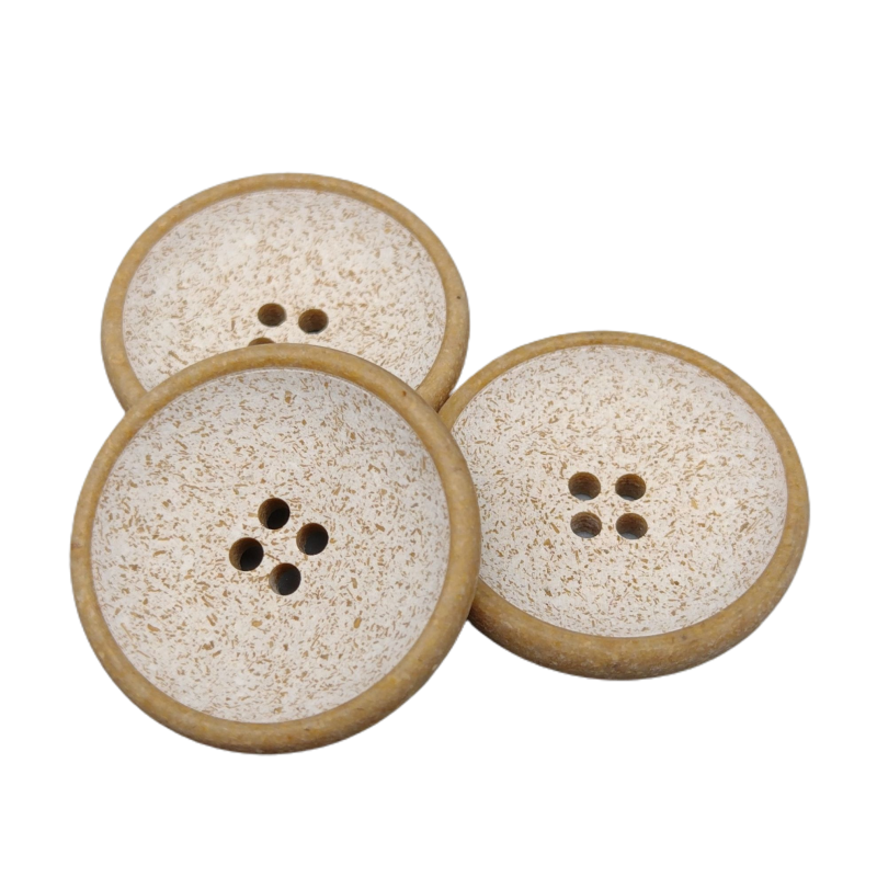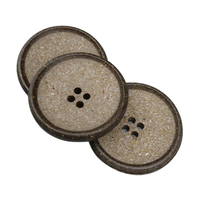 Diese Knöpfe enthalten 35-40% Reishülsenpulver und 40-50% Harnstoffharz.
