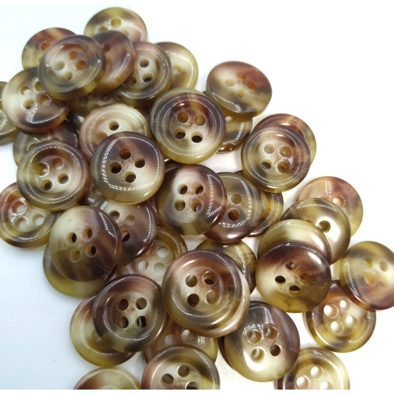 Braune Knöpfe mit rohen, braunen Untertönen. Eine Farbpalette, die gut zu einer Vielzahl von Braun-, Grau- und Schwarztönen passt.