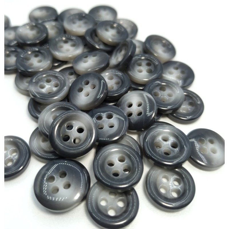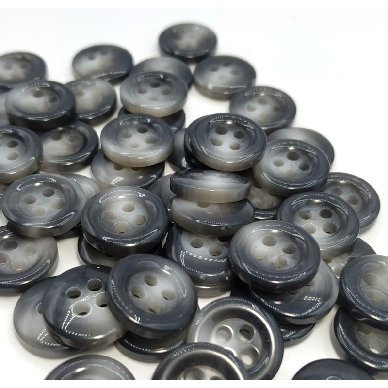 Knöpfe mit grauen und schwarzen Mustern. Eine Farbpalette, die sich gut mit verschiedenen Grautönen und schwarzen Drucken kombinieren lässt.