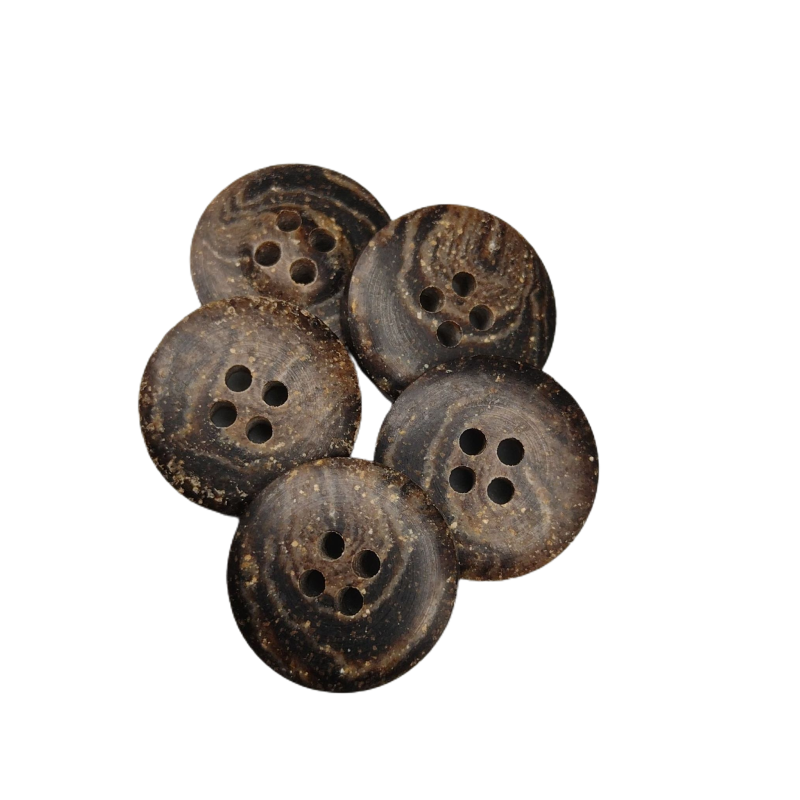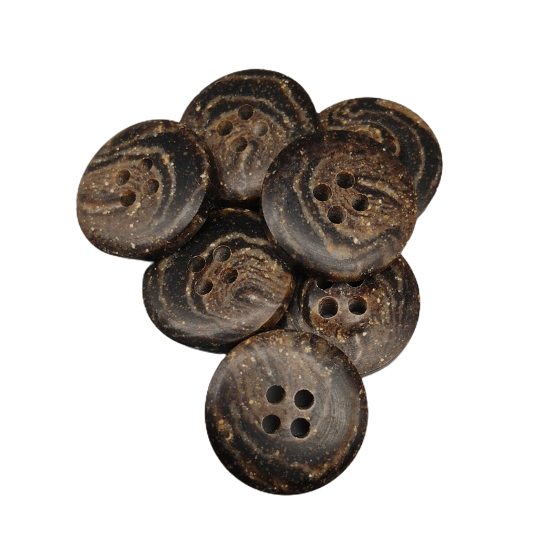 These buttons are made with coffee grounds and filled with thermosetting material to give the button consistency.