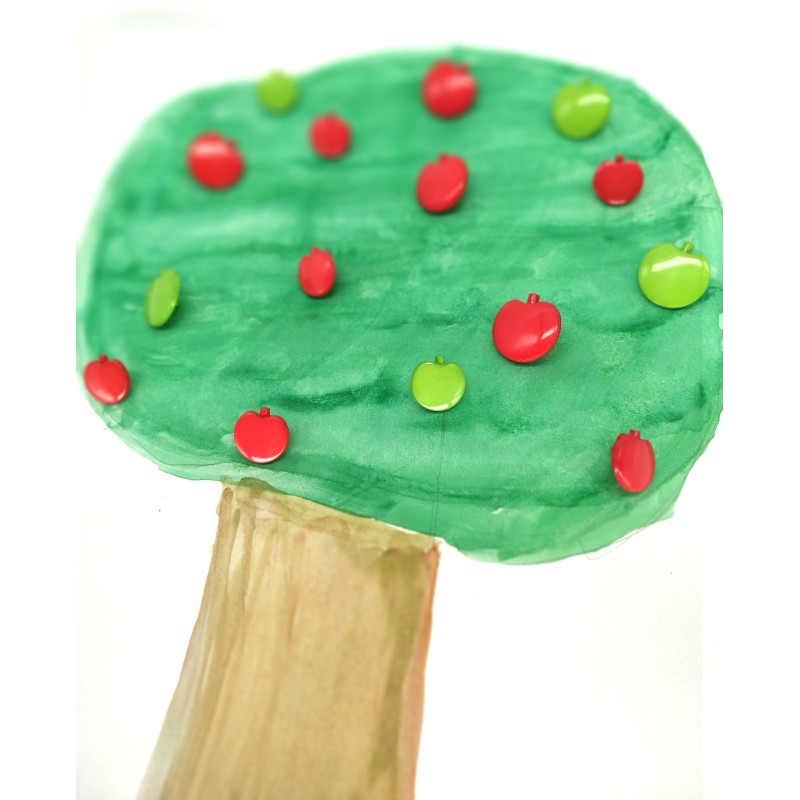 Apple-shaped buttons with holes for sewing. Two colors, one size (14 mm).