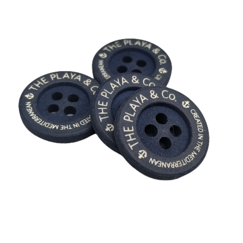 As an absolute innovation, we can achieve a double effect on the same button by using dyes compatible with both components of the button (cotton and recycled polyester), thus giving a bi-color effect, since each fiber absorbs the dye differently.