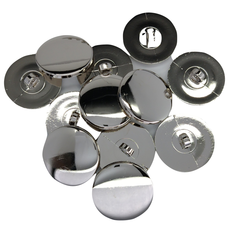 Classic flat, shiny button, made of nylon and finished with silver chrome plating.