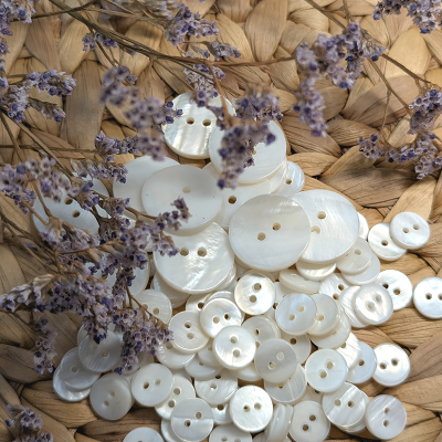 • Mother-of-pearl buttons are made from natural shells, and depending on the type of shell, they have different names. At Ecoboton, we sell the two most well-known varieties: River and Akoya.