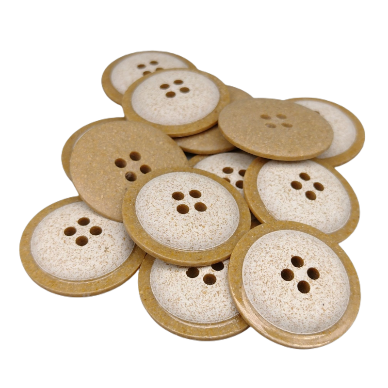 Ces boutons contiennent 35 à 40 % de poudre de balle de riz et 40 à 50 % de résine d'urée.