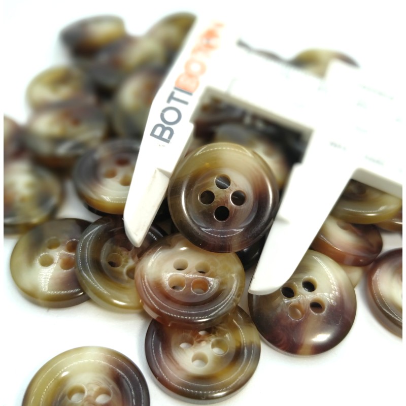• 25 mm et 5 mm d'épaisseur (manteaux, sacs, décoration). Ils possèdent quatre trous pour une couture plus solide, avec un rebord qui leur confère un aspect très élégant et une épaisseur qui assure la régularité du bouton.