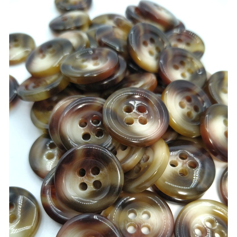 • 25 mm et 5 mm d'épaisseur (manteaux, sacs, décoration). Ils possèdent quatre trous pour une couture plus solide, avec un rebord qui leur confère un aspect très élégant et une épaisseur qui assure la régularité du bouton.