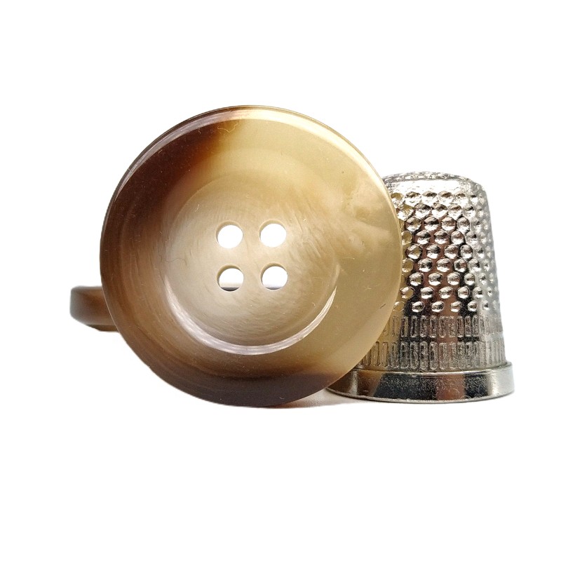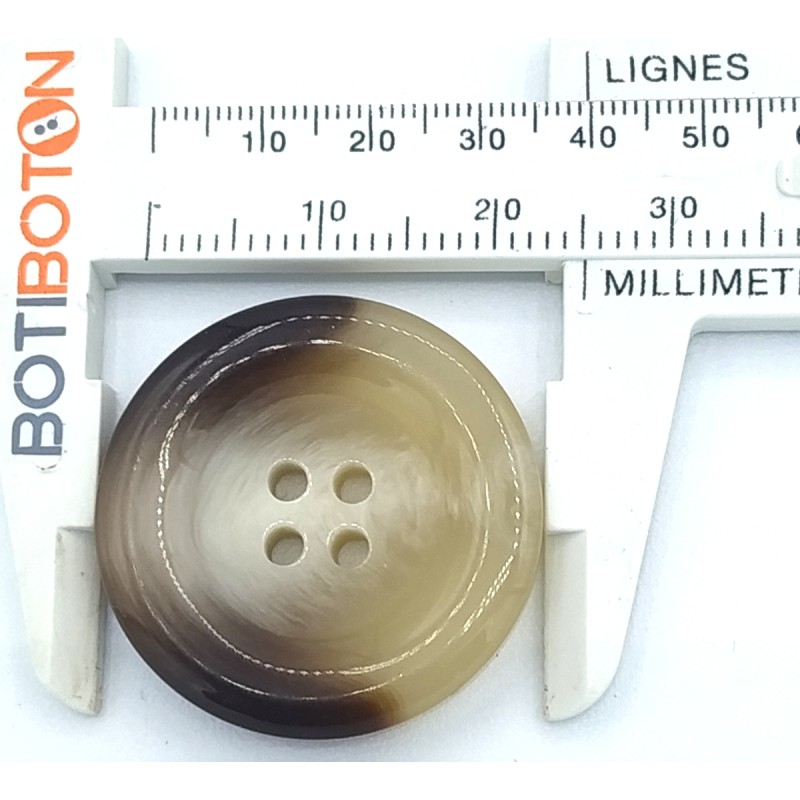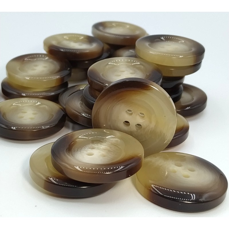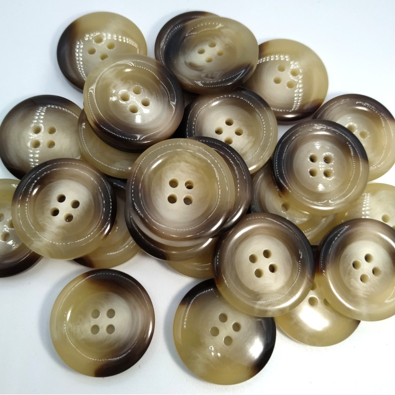 25 mm et 5 mm d'épaisseur (manteaux, sacs, décoration).Ils possèdent quatre trous pour une couture plus solide, avec un rebord qui leur confère un aspect très élégant et une épaisseur qui assure la régularité du bouton.