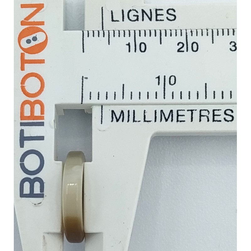 25 mm et 5 mm d'épaisseur (manteaux, sacs, décoration).Ils possèdent quatre trous pour une couture plus solide, avec un rebord qui leur confère un aspect très élégant et une épaisseur qui assure la régularité du bouton.