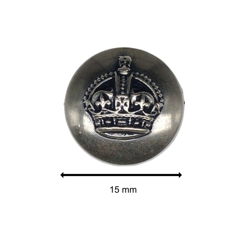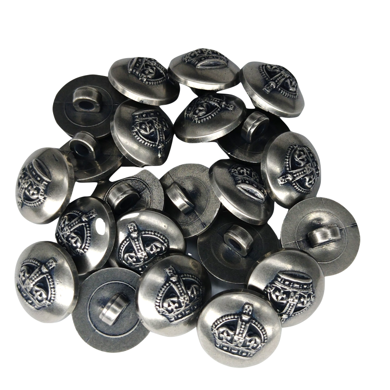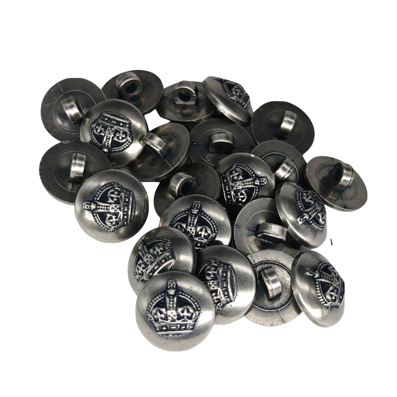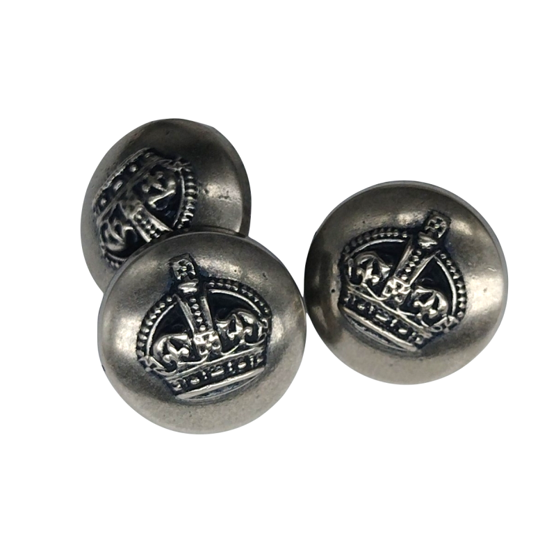 Bouton classique orné d'une gravure de couronne, en nylon et finition argent vieilli.
