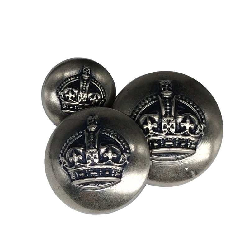 Bouton classique orné d'une gravure de couronne, en nylon et finition argent vieilli.