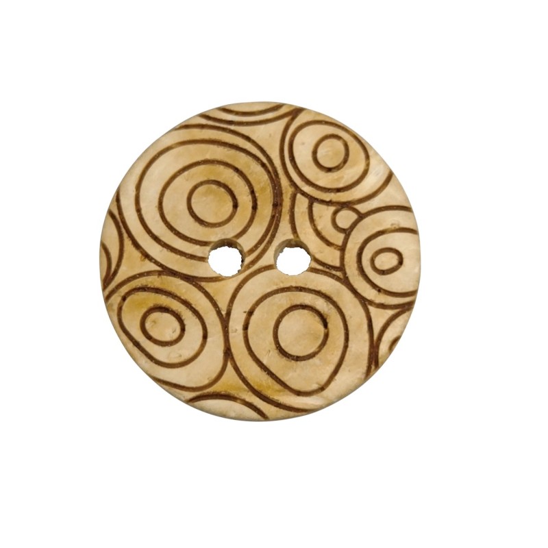 Les boutons en noix de coco blanche ornés de cercles sont fabriqués à partir de coques de noix de coco, ce qui leur donne un aspect très naturel d'écorce d'arbre.
