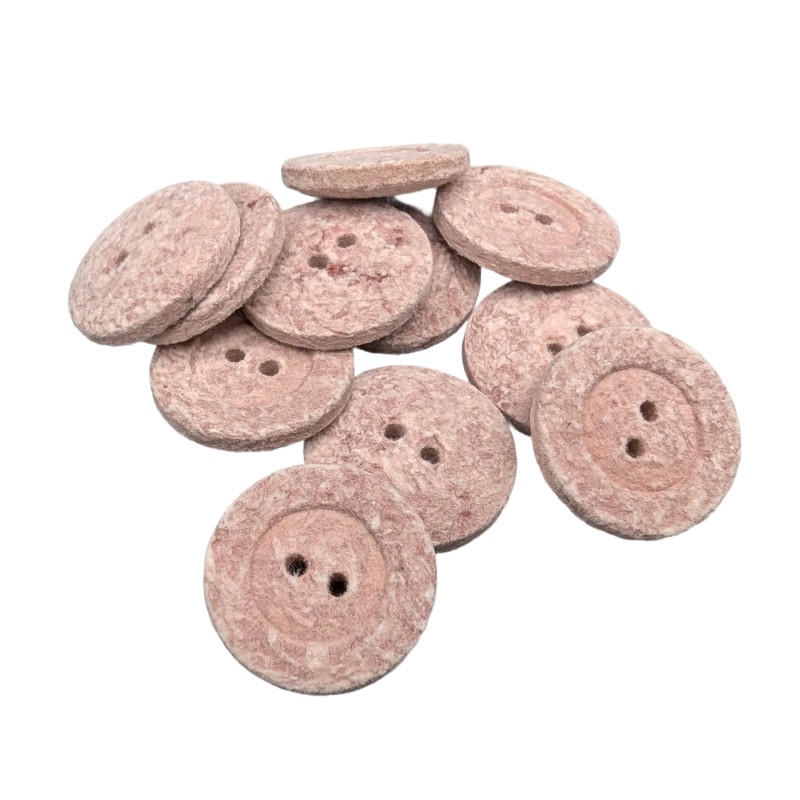 En tant qu'innovation absolue, nous pouvons obtenir un double effet sur le même bouton en utilisant des colorants compatibles avec les deux composants du bouton (coton et polyester recyclé), donnant ainsi un effet bicolore, puisque chaque fibre absorbe le colorant différemment.