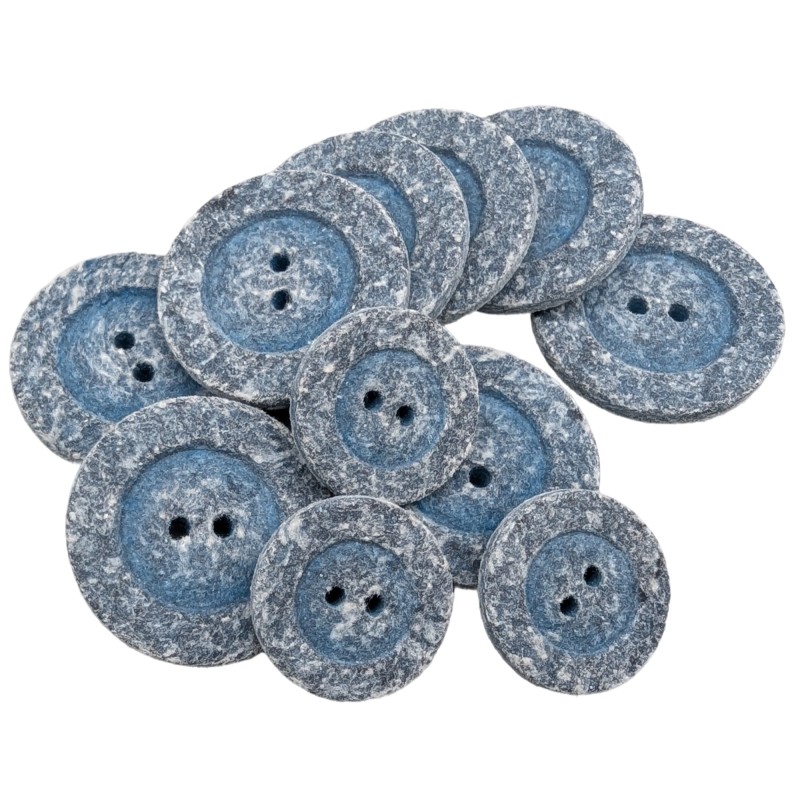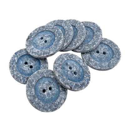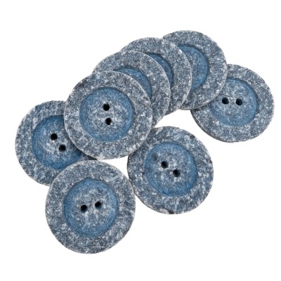 En tant qu'innovation absolue, nous pouvons obtenir un double effet sur le même bouton en utilisant des colorants compatibles avec les deux composants du bouton (coton et polyester recyclé), donnant ainsi un effet bicolore, puisque chaque fibre absorbe le colorant différemment.