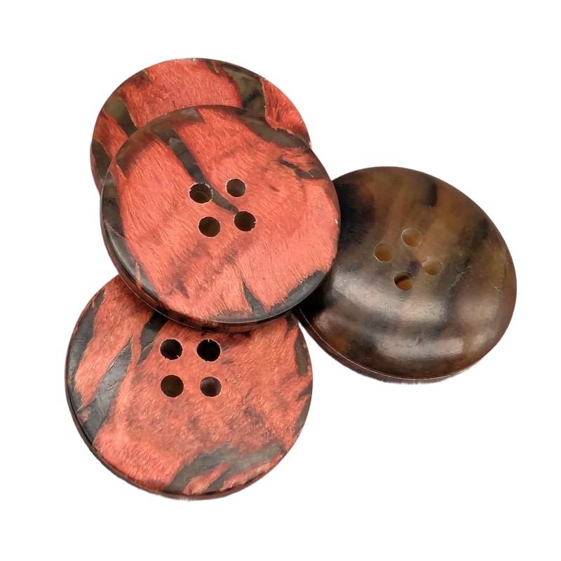 Ces boutons sont fabriqués à partir de racines naturelles et de résines de polyester.