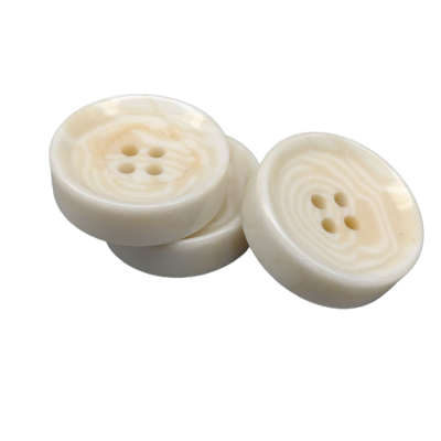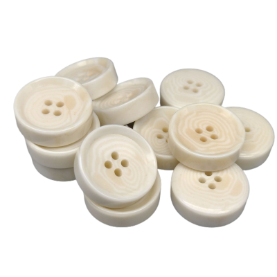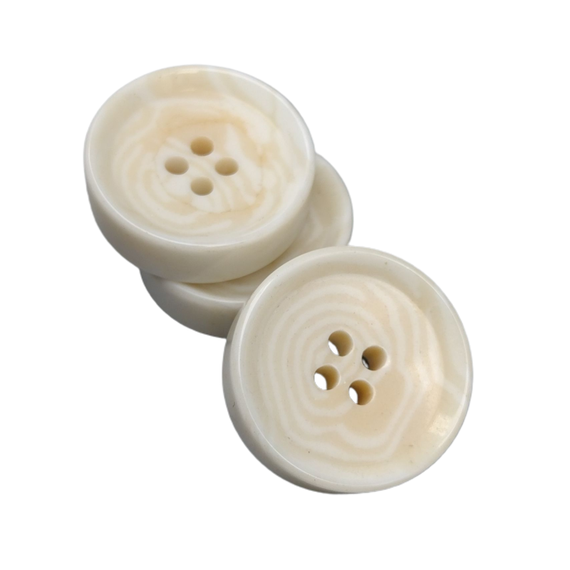 Ces boutons contiennent 40 à 45 % de poudre de Corozo, récupérée de fabrications précédentes, ainsi que 30 à 40 % de composants de moulage et 15 à 20 % de liants techniques.
