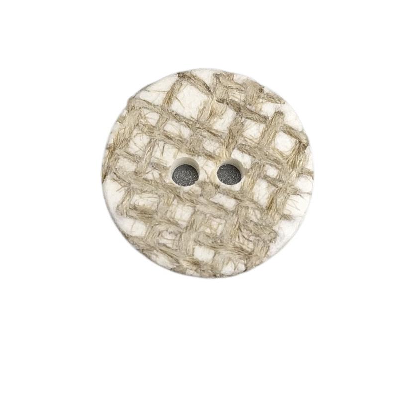 Les boutons en jute sont fabriqués à partir de fibres de jute, de bois et de liants.