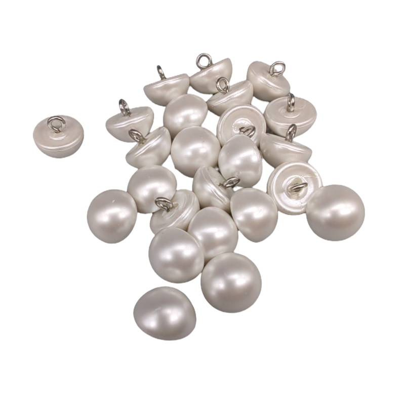 - Boutons en imitation nacre, en forme de demi-sphère, avec un anneau métallique pour la couture. (Ils ne rouillent pas.)