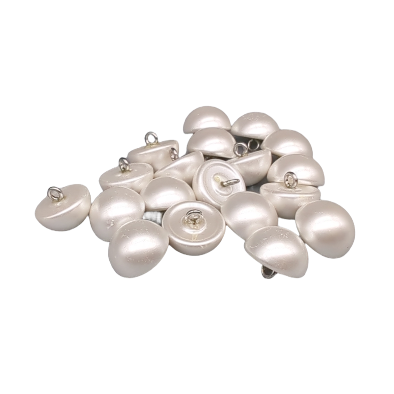 Boutons en imitation nacre, en forme de demi-sphère, avec un anneau métallique pour la couture. (Ils ne rouillent pas.)