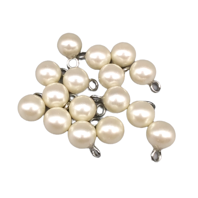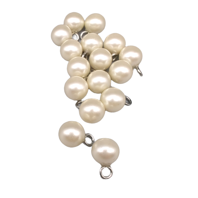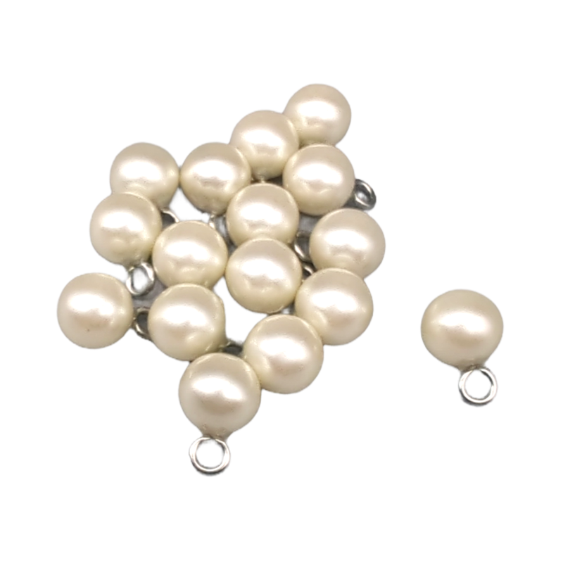 • Boutons en imitation nacre, de forme sphérique, avec un anneau métallique pour la couture. (Ils ne rouillent pas.)