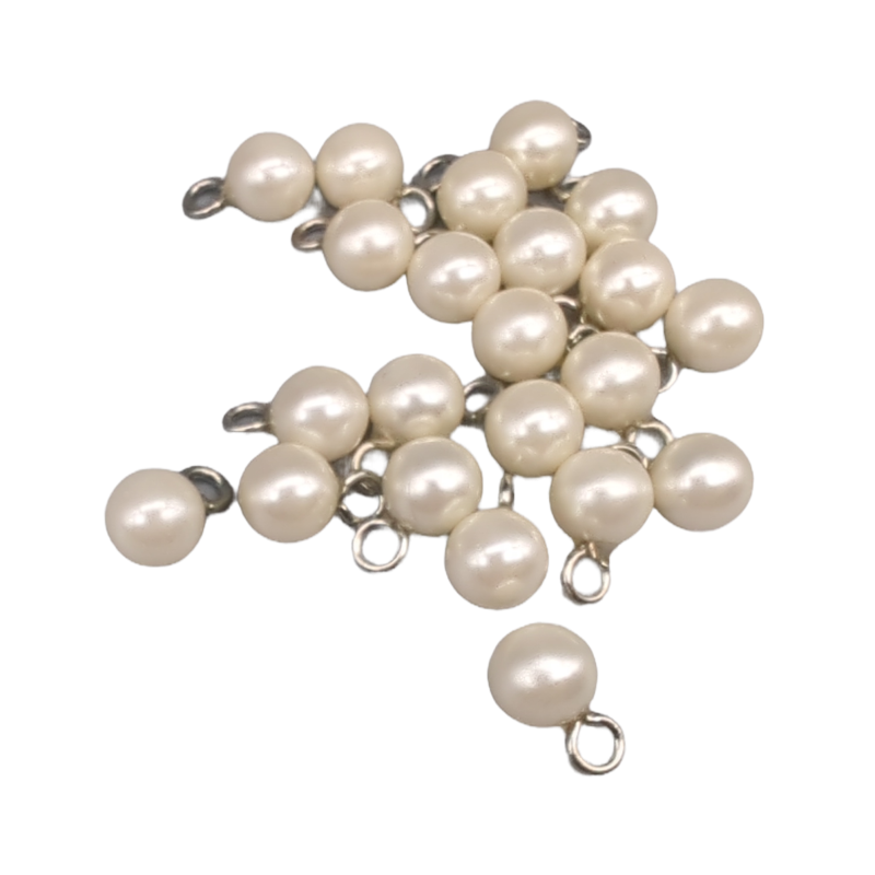 • Boutons en imitation nacre, de forme sphérique, avec un anneau métallique pour la couture. (Ils ne rouillent pas.)