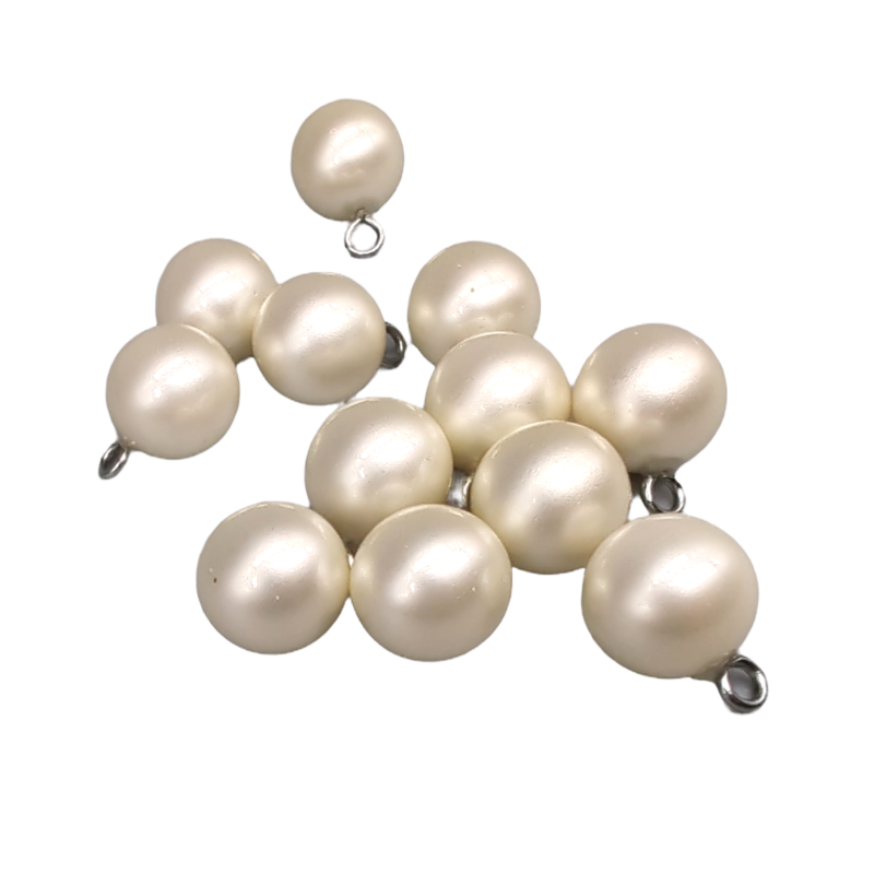 • Boutons en imitation nacre, de forme sphérique, avec un anneau métallique pour la couture. (Ils ne rouillent pas.)