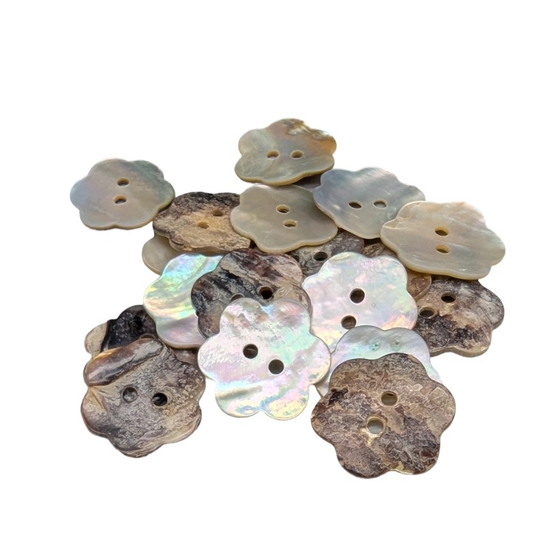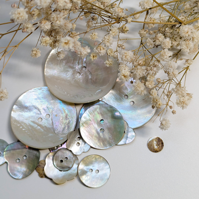 • Hanno un colore grigio perlaceo e un dorso più scuro, e sono bottoni leggermente irregolari, il che conferisce loro un carattere speciale e attraente.