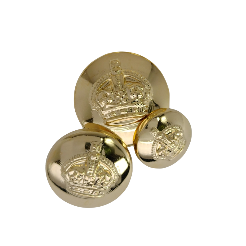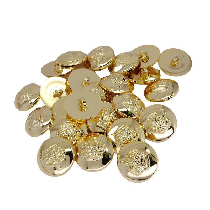 Bottone classico con incisione a corona, realizzato in nylon e rifinito con cromo dorato.