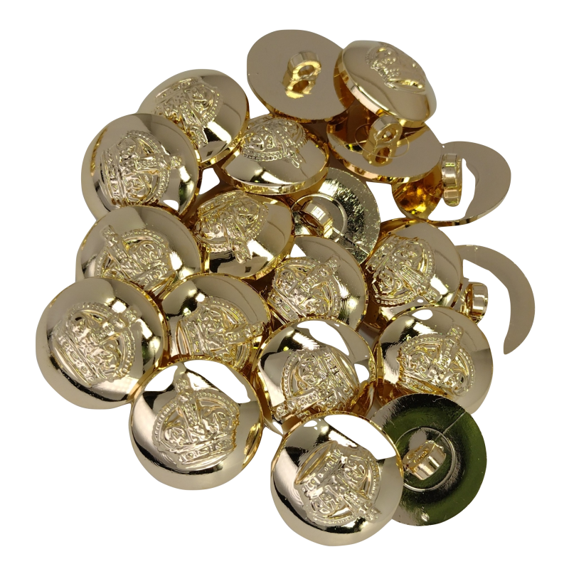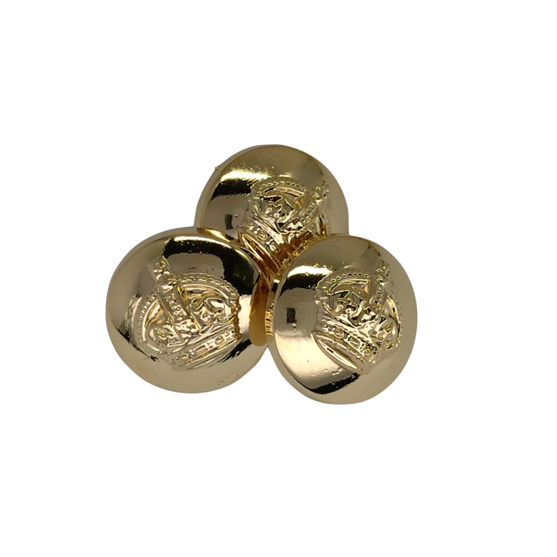 Bottone classico con incisione a corona, realizzato in nylon e rifinito con cromo dorato.