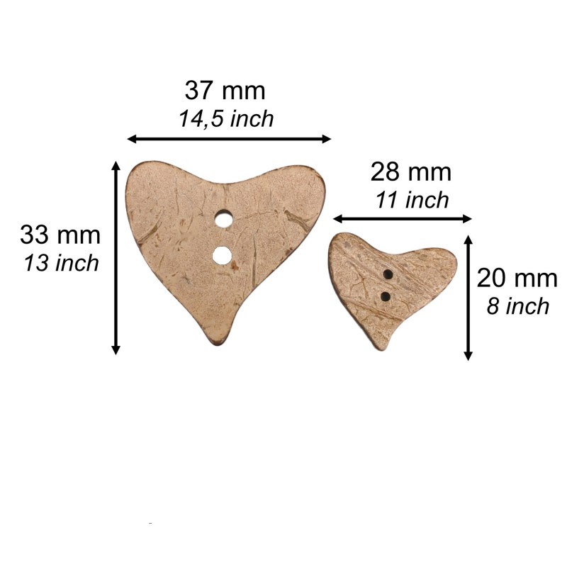 I bottoni in cocco a forma di cuore sono ideali come dettaglio per una borsa, per un progetto artigianale o come decorazione.