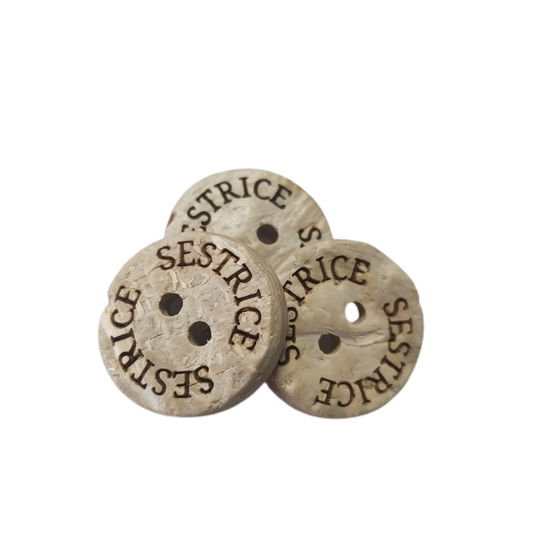 I bottoni bianchi in cocco sono realizzati con gusci di cocco, il che conferisce loro un aspetto molto naturale, simile alla corteccia di un albero.