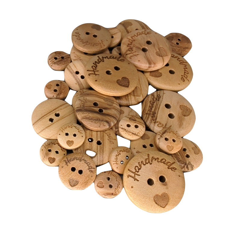 Bottoni in legno di alta qualità con incisione fatta a mano per aggiungere un tocco speciale alle tue creazioni. Disponibili in 4 misure, in pronta consegna.