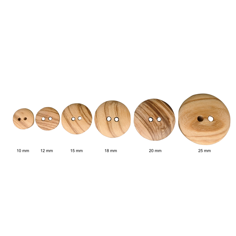 I bottoni in legno MD1007 sono realizzati in legno d'ulivo.
