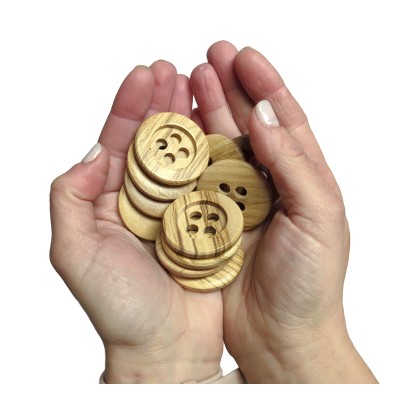 I bottoni in legno modello Lanero sono realizzati in legno di ulivo.