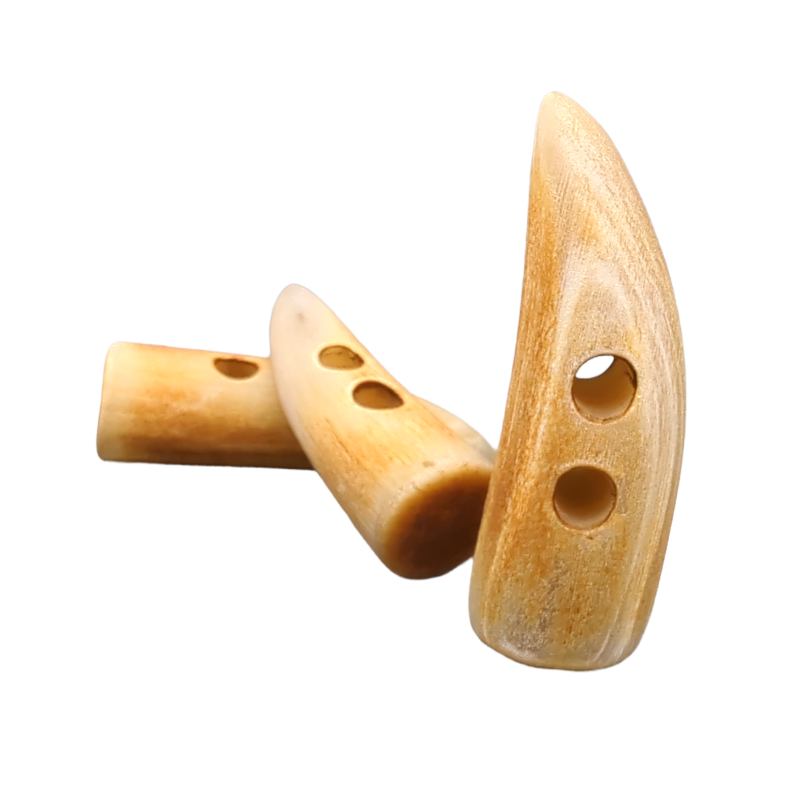 Bottoni in corno naturale disponibili in due tonalità e in un'unica misura.