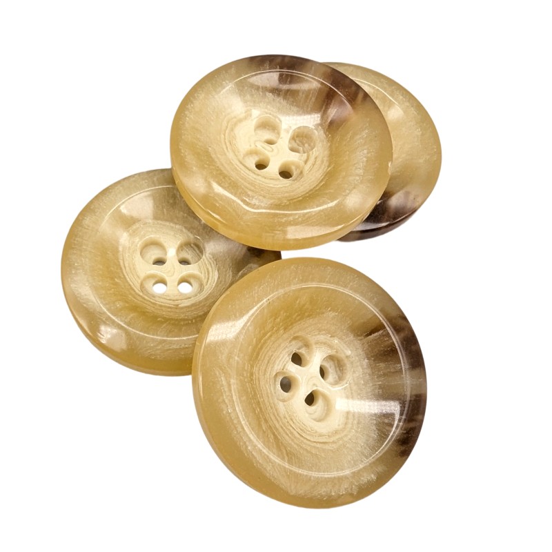 I bottoni in polvere di corno sono realizzati in polvere di corno, ottenuta dalla lucidatura del corno e di altri materiali riciclati. Questa combinazione consente di ottenere effetti cromatici unici e un'ampia varietà di finiture.